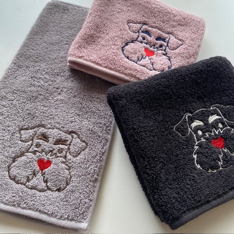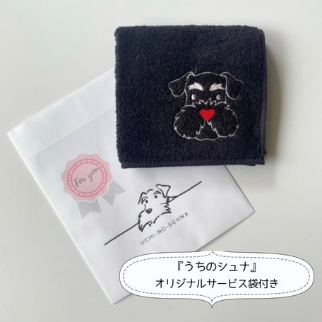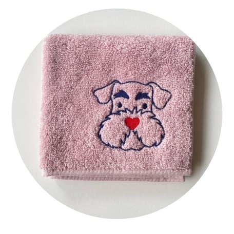 シュナ愛(♥)ちょっと強めのタオルハンカチを作りました。素材は吸水性の良い