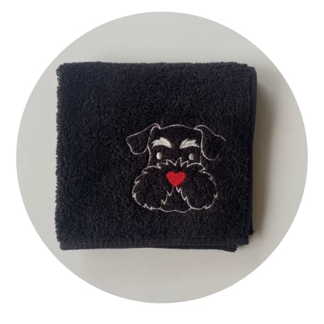 ハート型のお鼻をポイントに。シュナウザーの顔を大きめに刺繍して
