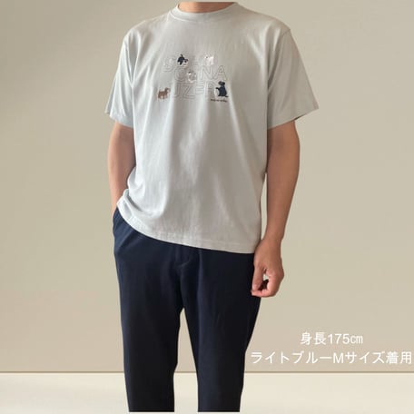 そんな可愛らしい様子を刺繡ならではの表現で作り上げたTシャツです。手描き風にした